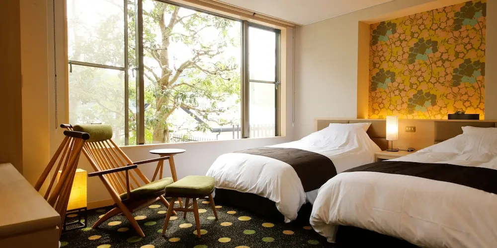 Nice and quaint ryokan with free shuttle service. The tourist information centre can help to contact them for you when you arrive. We booked the only room with an outdoor onsen and bathroom as we were travelling with a toddler. All other rooms don’t have any private toilets. Dinner was amazing and served at sister ryokan 5 minutes walk away. Breakfast was served downstairs. The staff were always smiling and ready to help. Very friendly and welcoming ambiance. Only complaints — room aircon, air purifier/humidifier and fridge were quite noisy throughout the night; some stains on the pillow case; toilet wasn’t well ventilated.