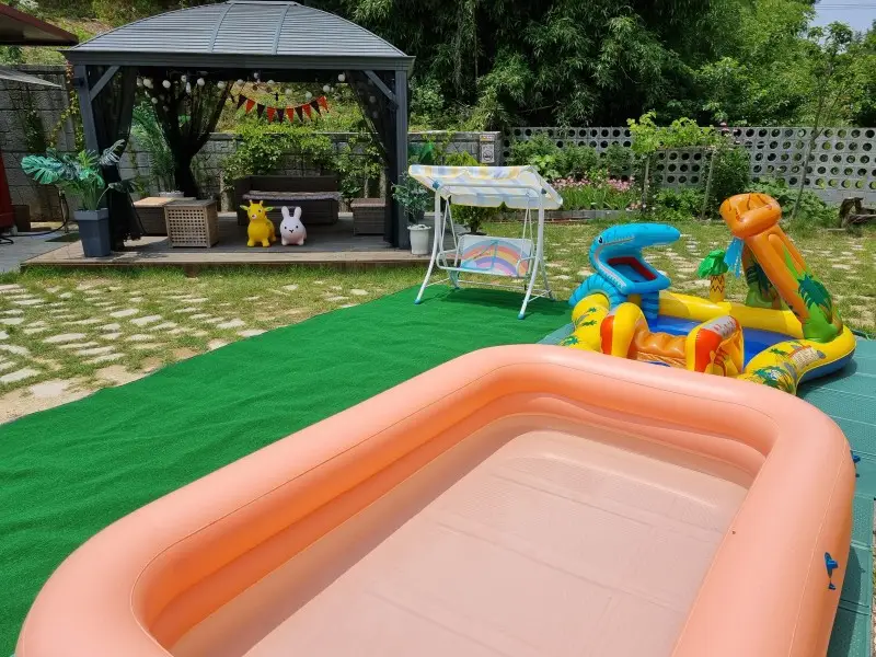 넓은 마당은 아이들이 안전하게 자전거, 킥보드 타는 공간이 있으며, 물 풍선과 버블건을 가지고 와 마구마구 던지고 불어도 돼요