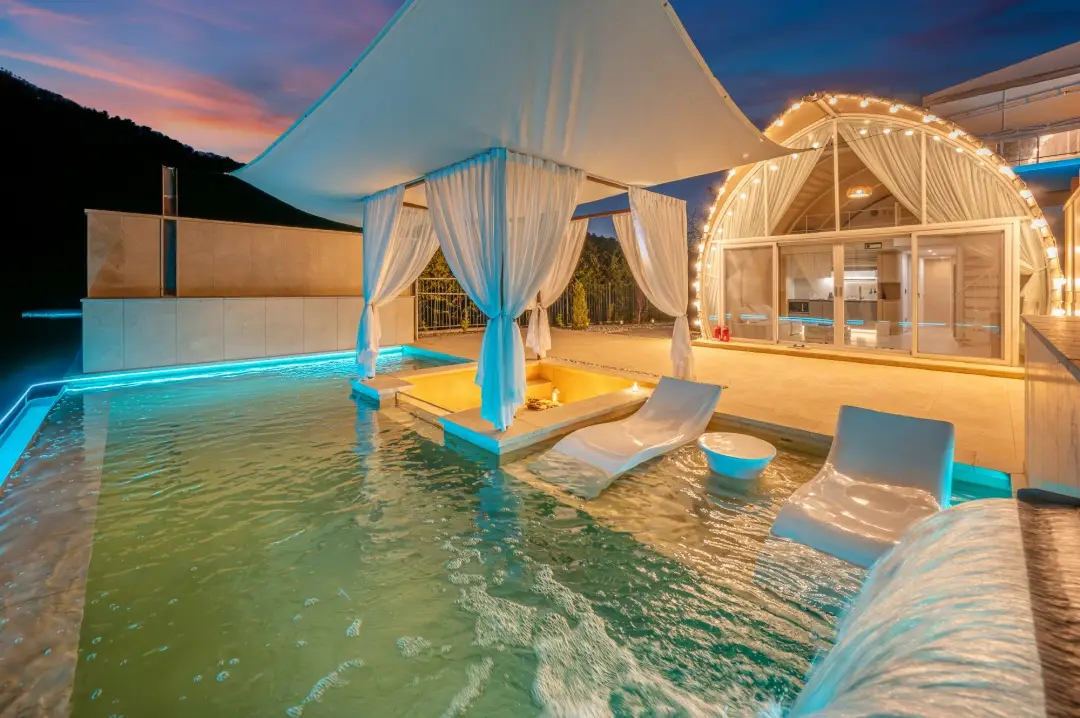 전 객실 개별 온수풀 & 감성 캠핑의 완성