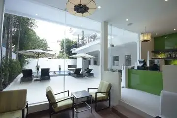 We were really disappointed with this place, for one main raison, the pictures don't match with the reality. They replace the pool area and boutique style facade, with a bar for locals with BBQ and very loud Karaoke, they shortened the pool, so you don't feel like swimming in. The staff is never at the counter when you need help.