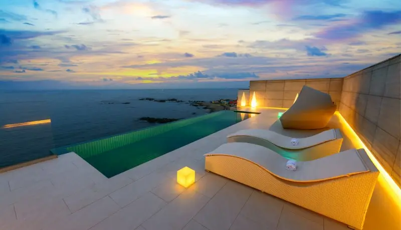 자연친화적인 컨셉으로 전경에 모래와 바다를 보며 자유를 만끽하실 수 있도록 3년이 넘는 오랜시간 끝에 건축하였습니다. 바다와 일체된 느낌을 즐길 수 있는 이스케이프의 인피니티 풀에서 소중한 힐링 시간을 가져보세요.