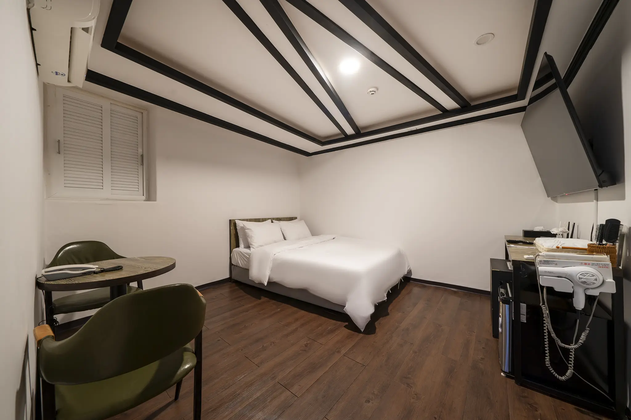 I needed a room for 4 days and it was a last minute booking, while it was cheap it had a very off putting vibe. Not to mention it’s in an ally way, it took me an hour just to find it. 1st it’s pretty dark in the building and the keys you get are 2 physical keys one for the main door the other is for your actual room door. Upon arrival there was hair all in the bed and pillows even some on the floor. The comb and hairbrush were both used with hair still in them. When entering the bathroom I found mold growing on the mirror and a bunch of small holes in the wall. Many of which seemed to have been covered with putty. There are no windows in the rooms, just a small sliding panel that just looking into the hallway. Nothing looking outside. I’m pretty sure the people who work there also live there because there was a dog barking every night I was there. The building also has no smoking signs yet when I was leaving the whole hallway smelled of cigarettes. Over all of your in a pinch going here isn’t the complete worst, but if your looking for places for an upcoming trip I would honestly look elsewhere. ( the amenities that are shown when looking at the pictures don’t exist too, I didn’t get anything but two warm waters in the fridge because the fridge barely worked).