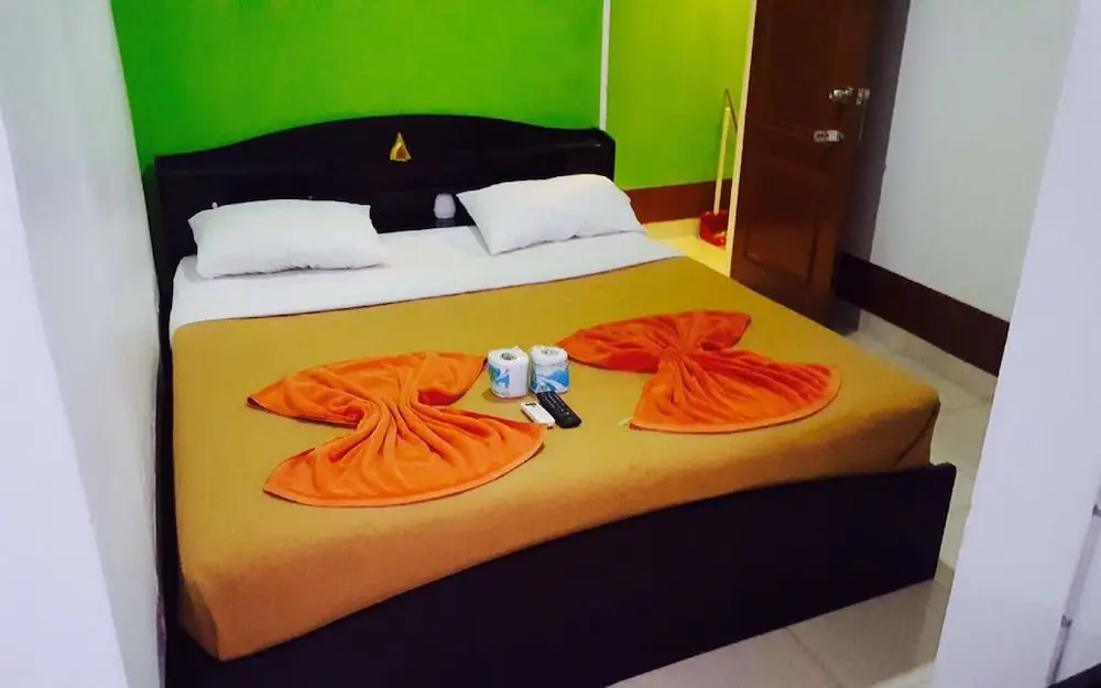 Staff were useless! Looks like no-one works there. Not what it looks like on pictures! Stained bed sheets no water provided bathroom had disgusting drains shower water has no where to go so it was like a swimming by pool! We’ve payed for a double room and when we arrived at the property the lady said there’s no double rooms available so we got a twin room! A lot of noise outside as there’s a Muay Thai boxing club/ bar outside our window! We’ve booked for 3 nights and couldn’t sleep until 3-4 am until the club closed. When asked to clean the bedroom no one came to clean! Just dropped toilet roll on the bed! Asked to speak to the management of the guesthouse the lady from the next door hostel said she’s in charge of the place and her manager went to India. Really don’t recommend this place.