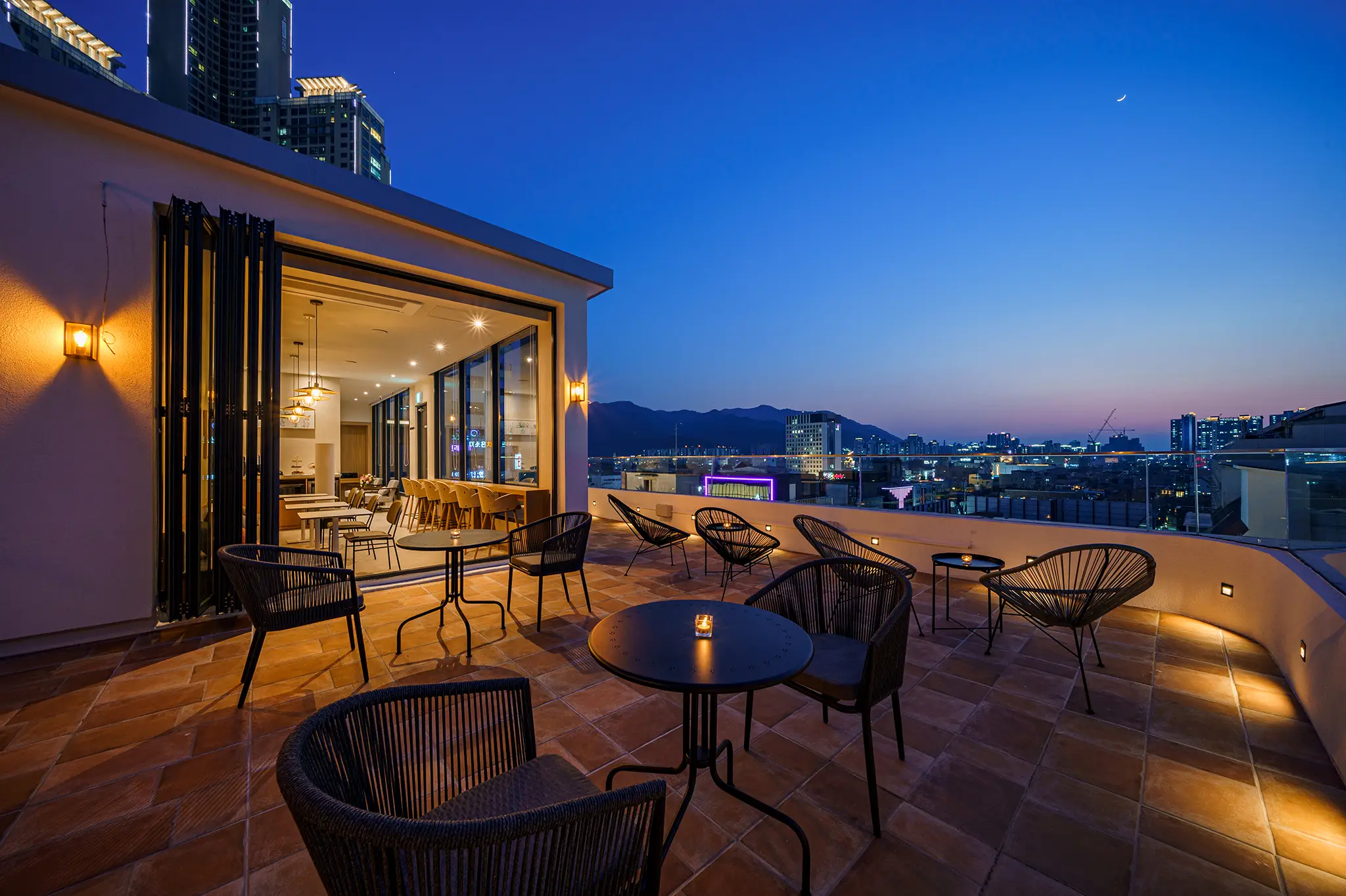 또 모든 숙박객이 사용 가능한 8층엔 야외테라스가 준비되어있습니다. 도심 속에서 city-view를 보시면서 힐링할 수 있으니 많이 이용해주세요.