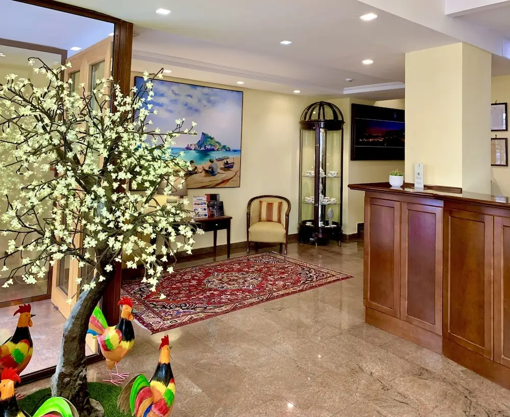 The Hotel Isabella is a lovely property in the best location possible for being in the center of Taormina. Convenient to all sights. However, we were disappointed in the room we were given. We reserved a room with a balcony for a five-night stay. We were assigned room 44 which they call a balcony and is no more than a protective railing. Not able to fit chairs to sit there. it can only fit one person at a time. We single filed onto to the ledge to look out. The room next door which does have a good-sized balcony (chairs and table), where the 2 sets of guests that stayed for approximately 2 days each, routinely enjoyed sitting out on their balcony and had a good laugh whenever we tried to go out there scraping against the exterior wall and the railing that they deem a balcony. The room below had a full terrace. We had a railing. We expected better considering we stayed 5 nights. In saying that, the staff were helpful and available and the breakfast buffet was ample.